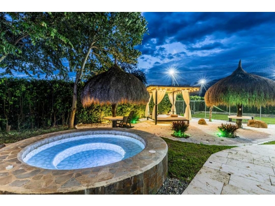 Kiosco : 110m2 con cocina integral en isla , plancha y BQ, billar , mesa de pin- pon , sapo , dardos , gimnasio con aire acondicionado , sala de tv , 2 baños , alcoba con baño y aire